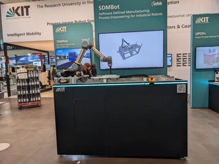 SDMBot was built as a fair demonstrator to showcase not only our PyBullet Industrial simulation environment, but also the broader idea of planning manufacturing processes digitally before deploying the resulting paths on a real robot. Instead of treating simulation as a side tool, the demonstrator was designed to make digital process planning itself tangible and intuitive.
